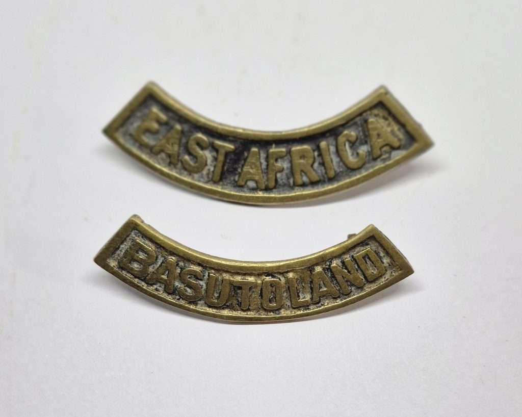 WWII Brass Shoulder Titles for Basutoland and East Africa