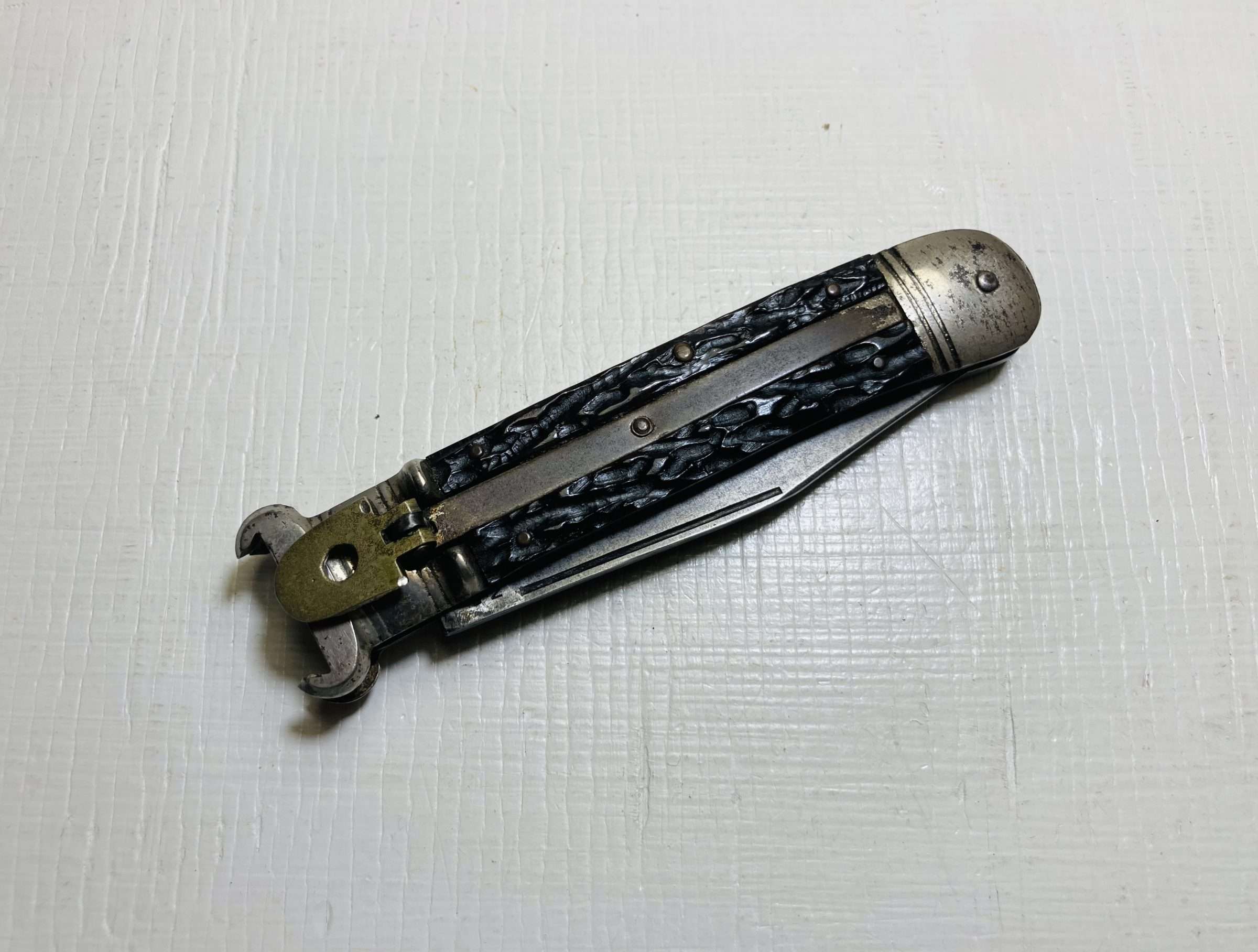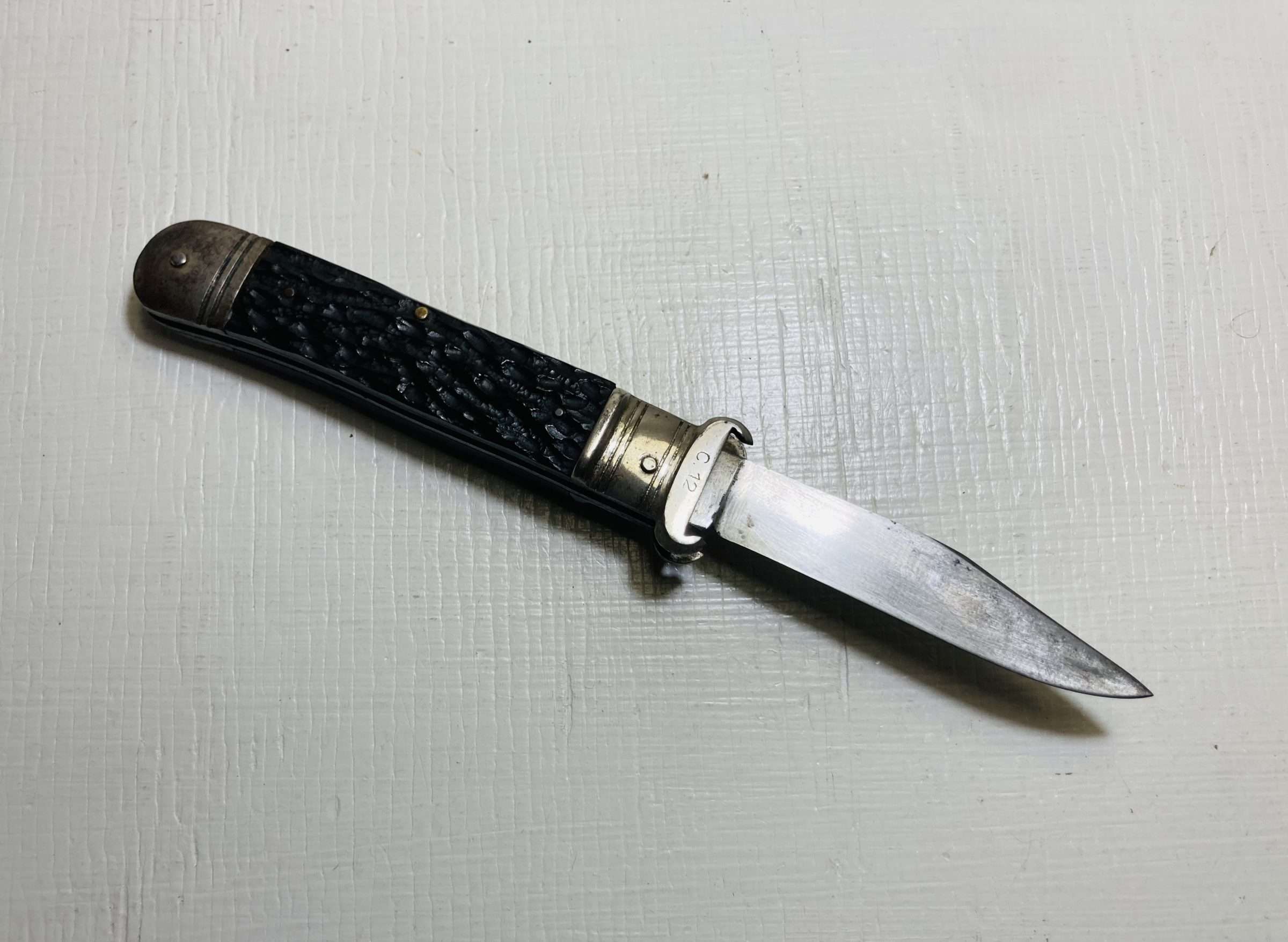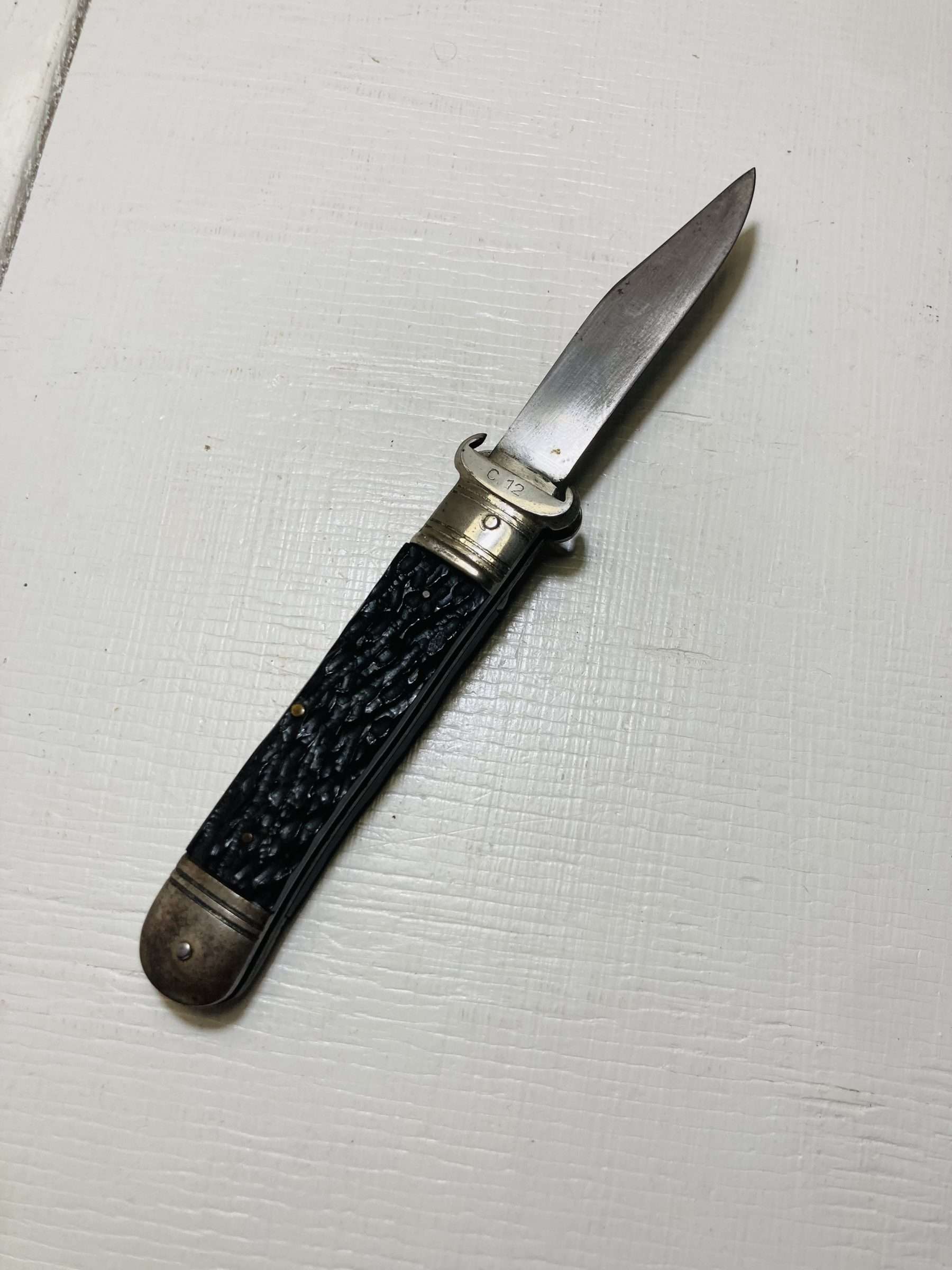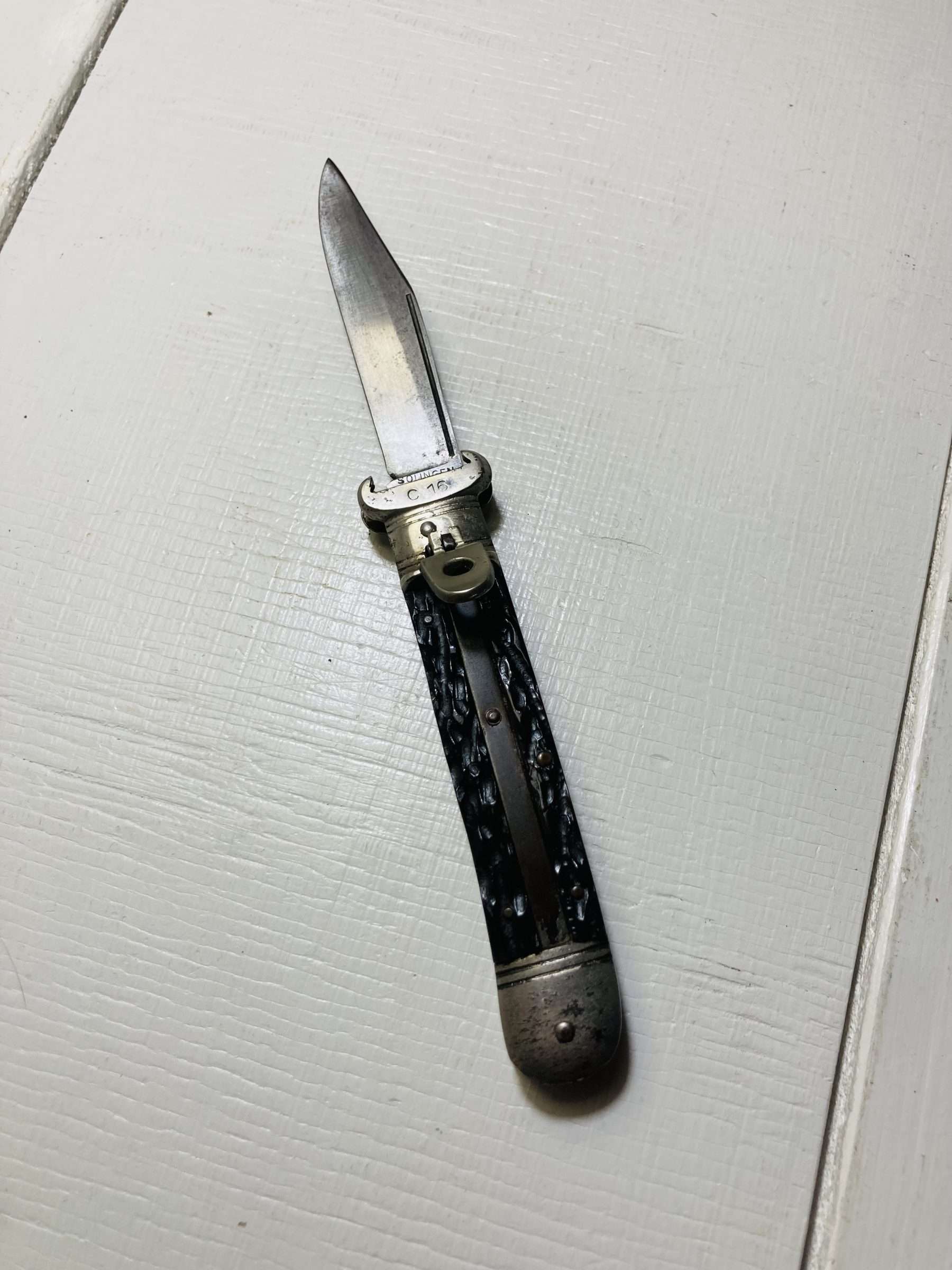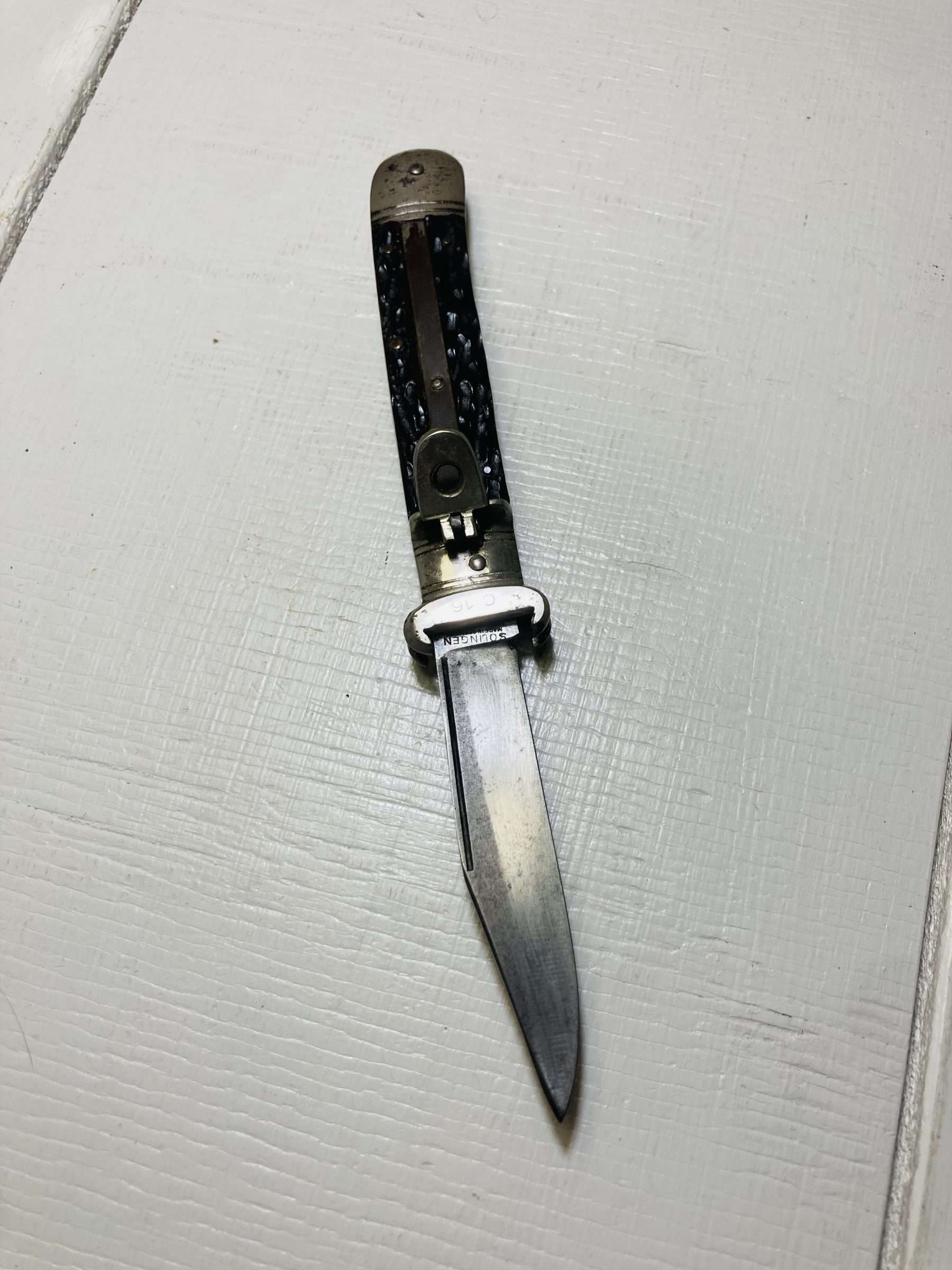 A classic vintage German lever lock switchblade manufactured in Solingen, widely regarded as the historic centre of Germany’s blade-making industry.
