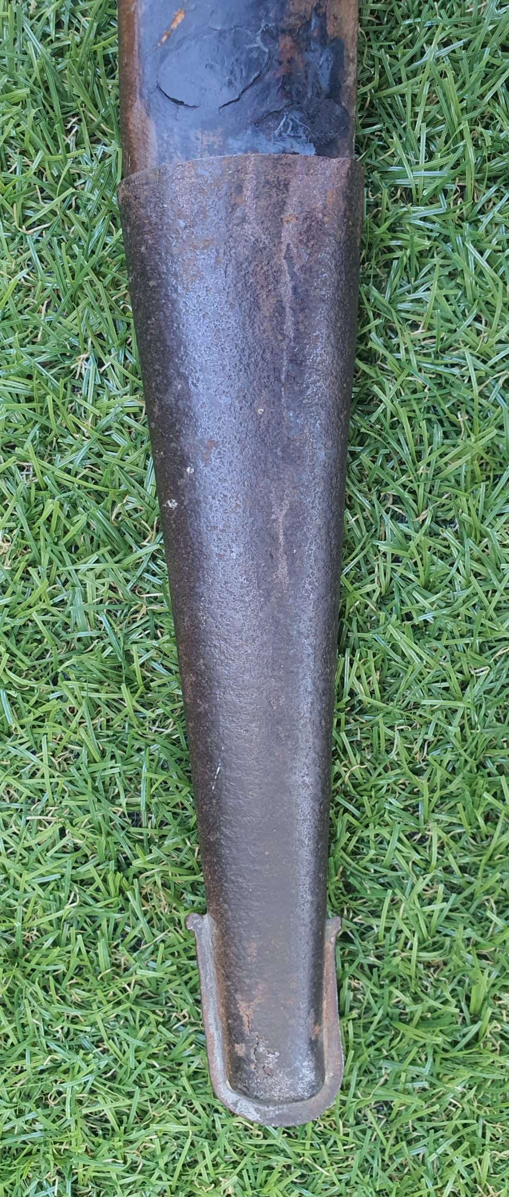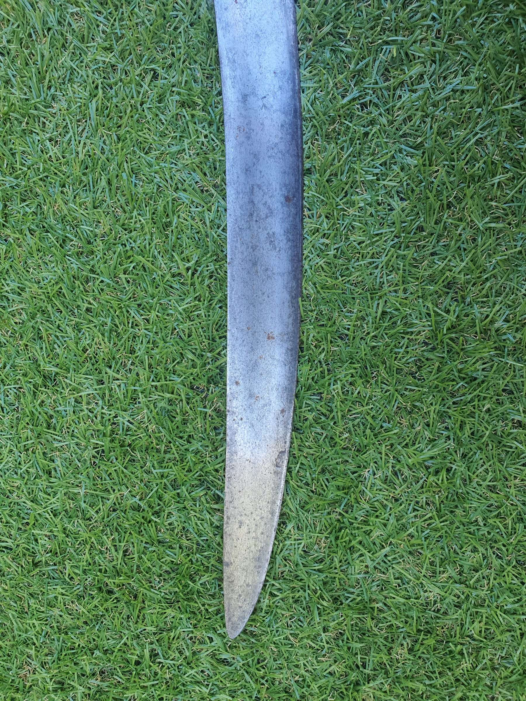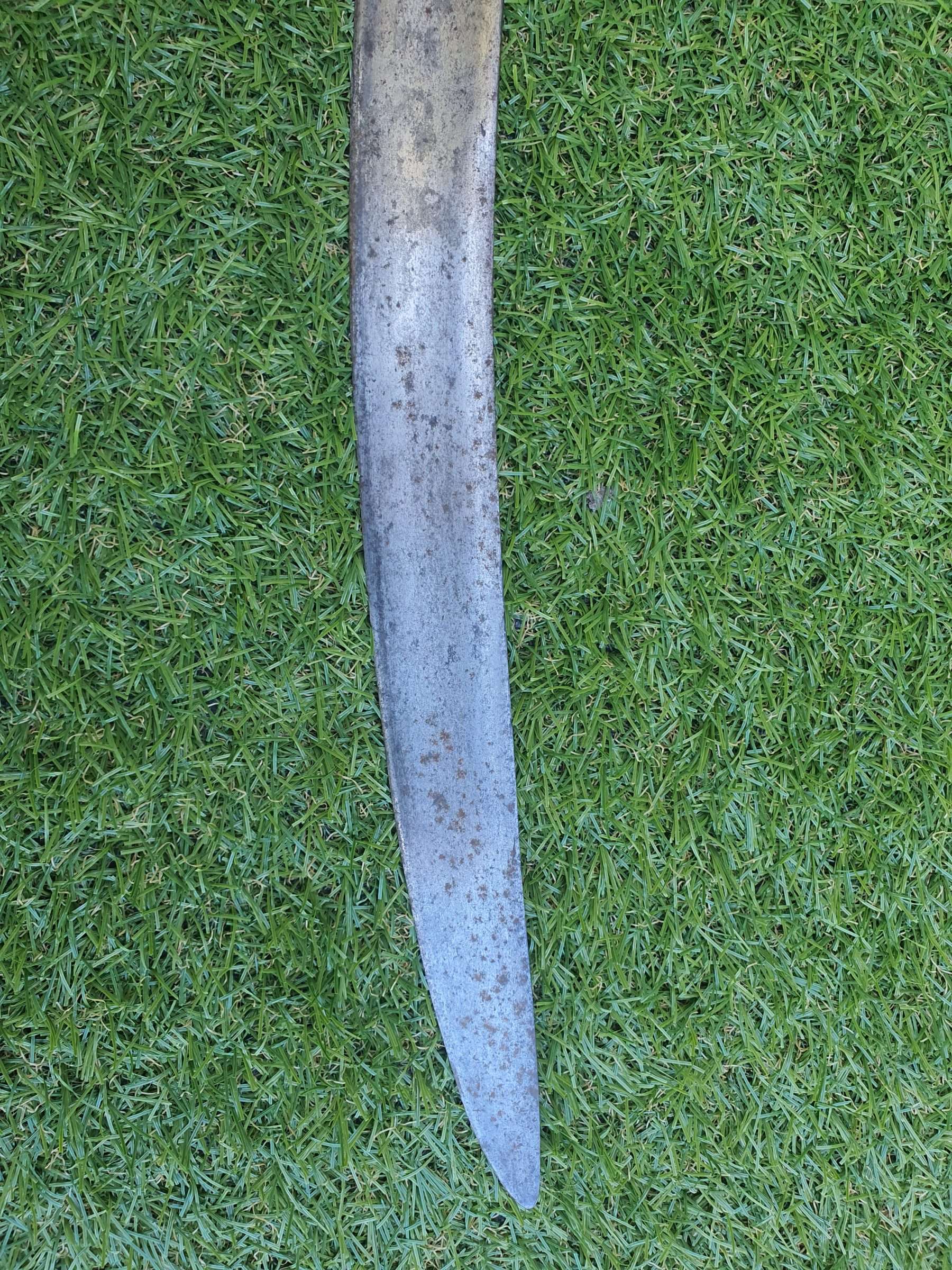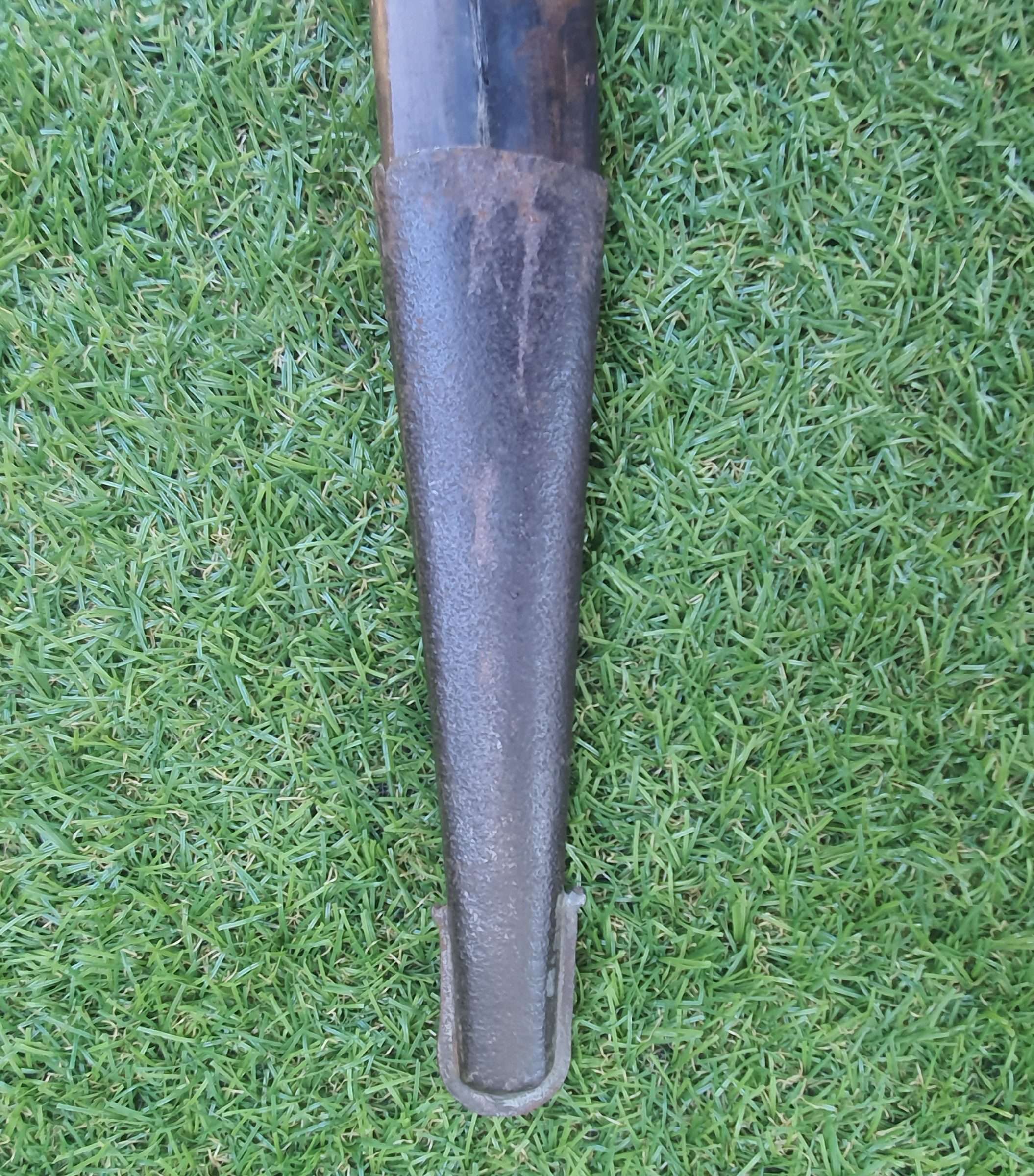 Indian Talwar Sword Or Sabre with Scabbard. Probably mid 18th Century with a typical iron disc hilt and knuckle bow, and a fullered blade. There as signs of gilding decoration on the hilt. These were used extensively within the Indian sub continent.