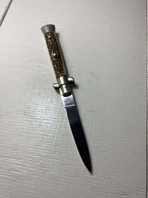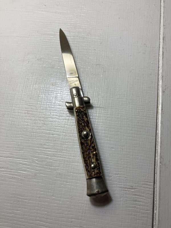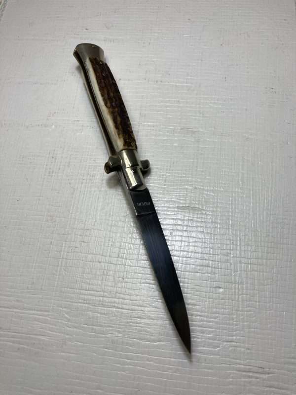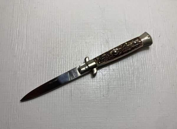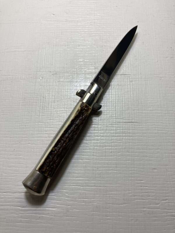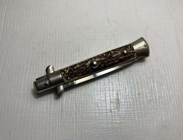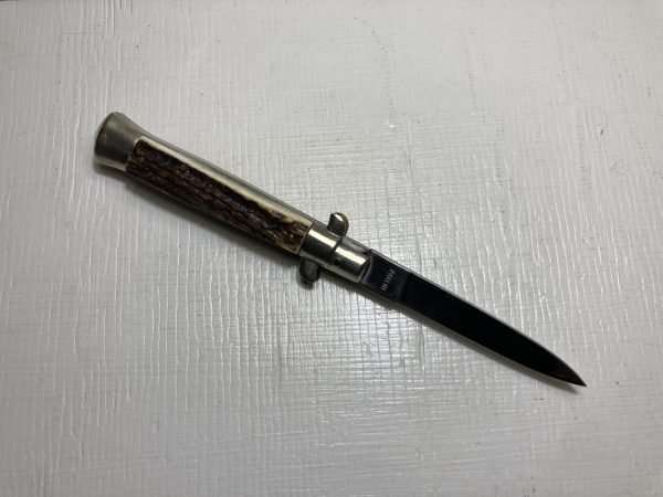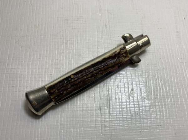 Very rare Bob C rostfrei import – Rare mechanism in a stiletto along with the stamp being it has a number after rostfrei “4” stag horn. Button open, button close.