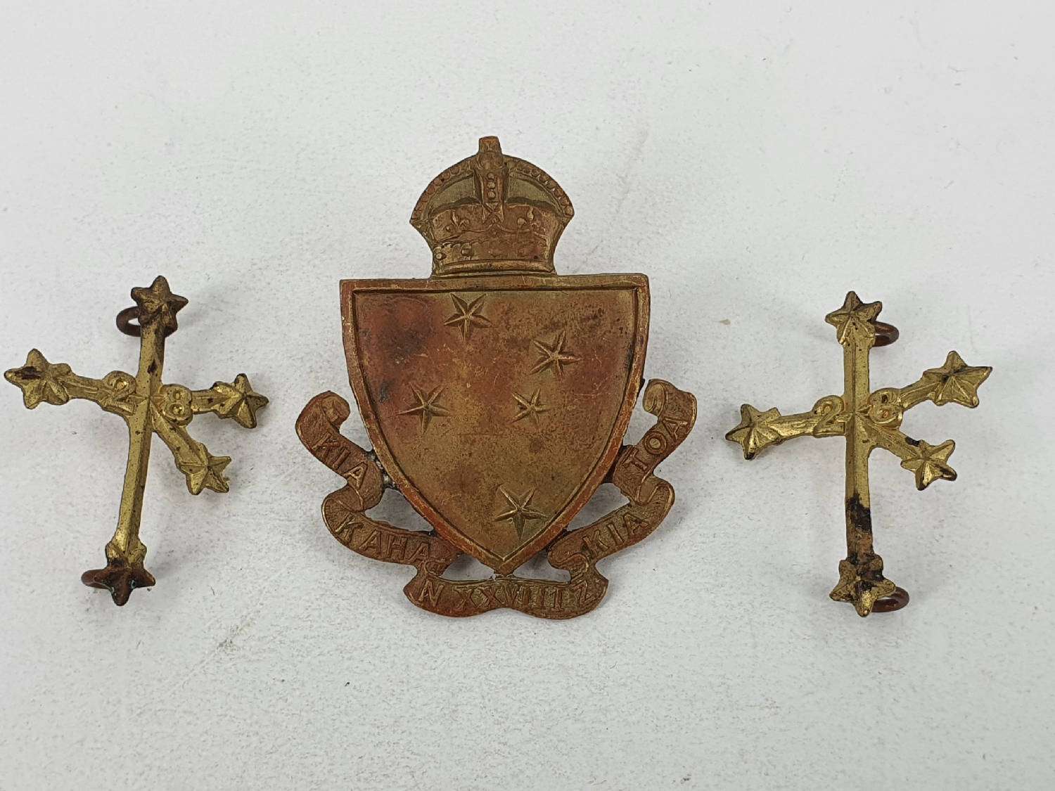 WW1 New Zealand 28th Reinforcements Cap and Collar Badges Set