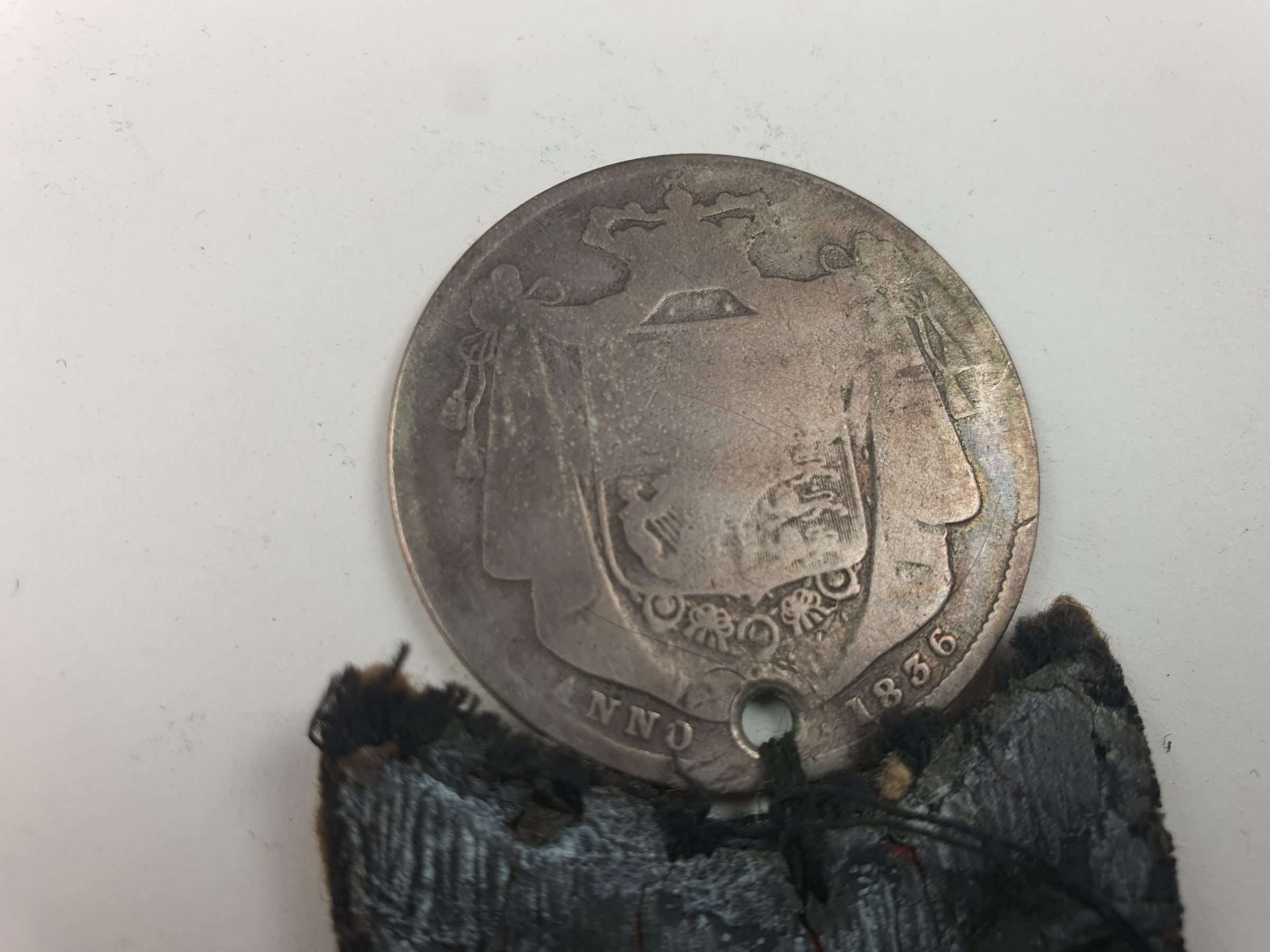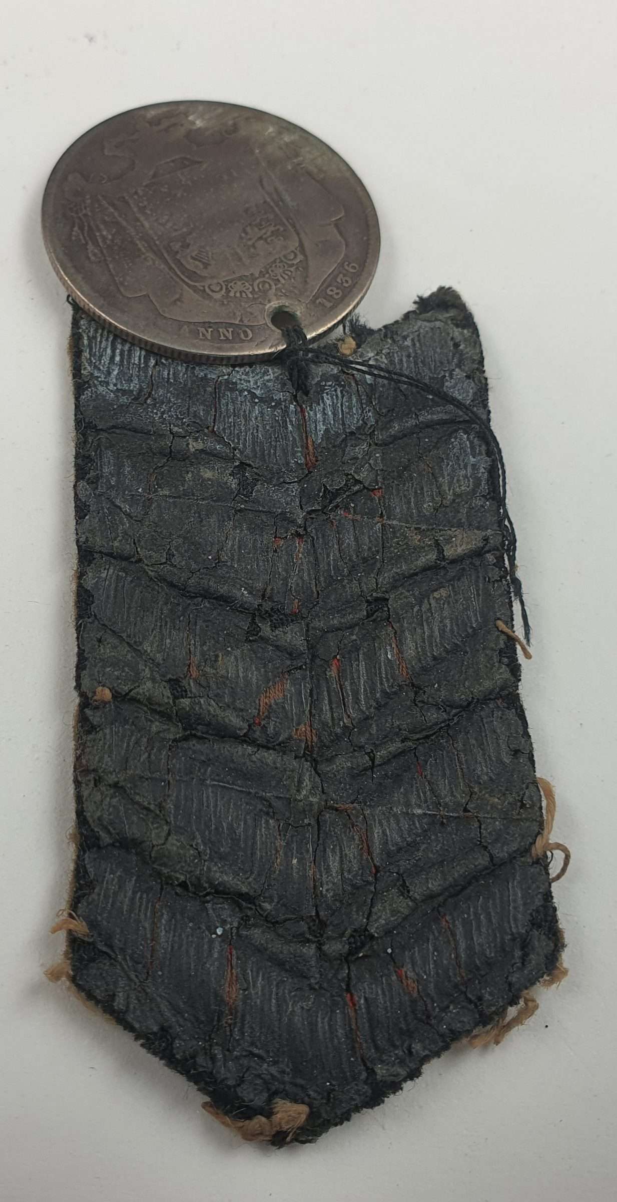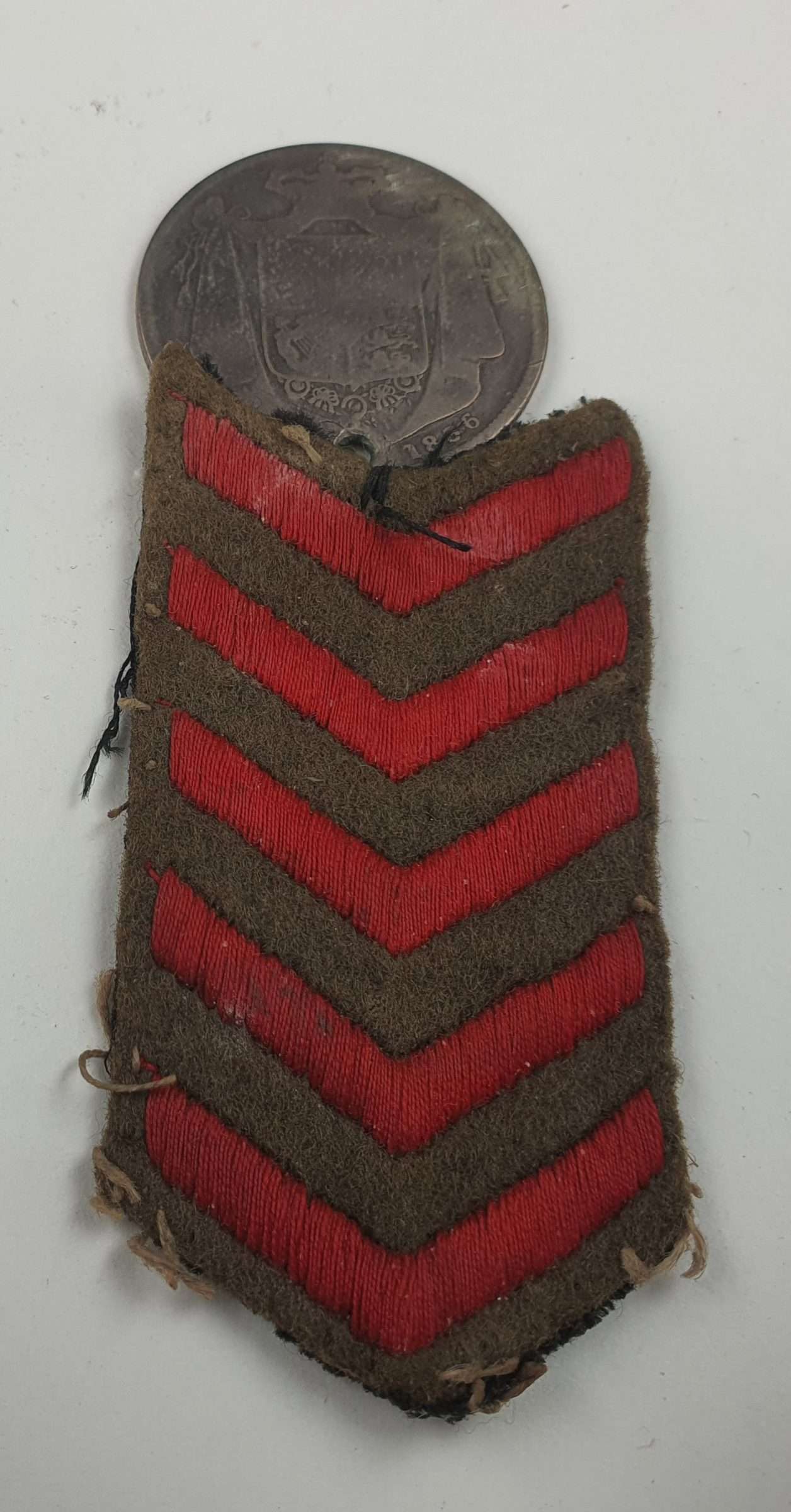WW2 New Zealand overseas service chevron (Five Years) and US 1836 lucky coin. Found together, so I am think it best they stay together.