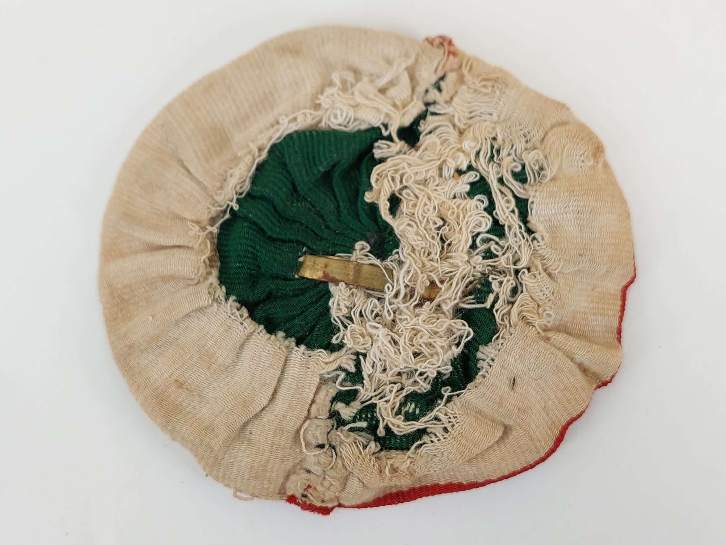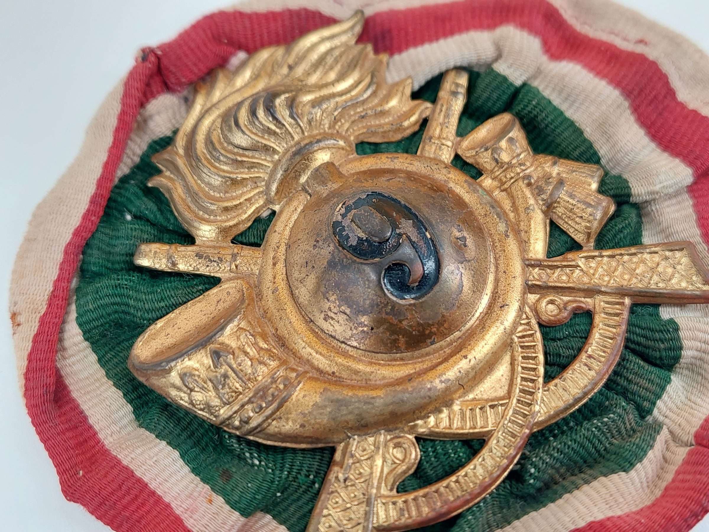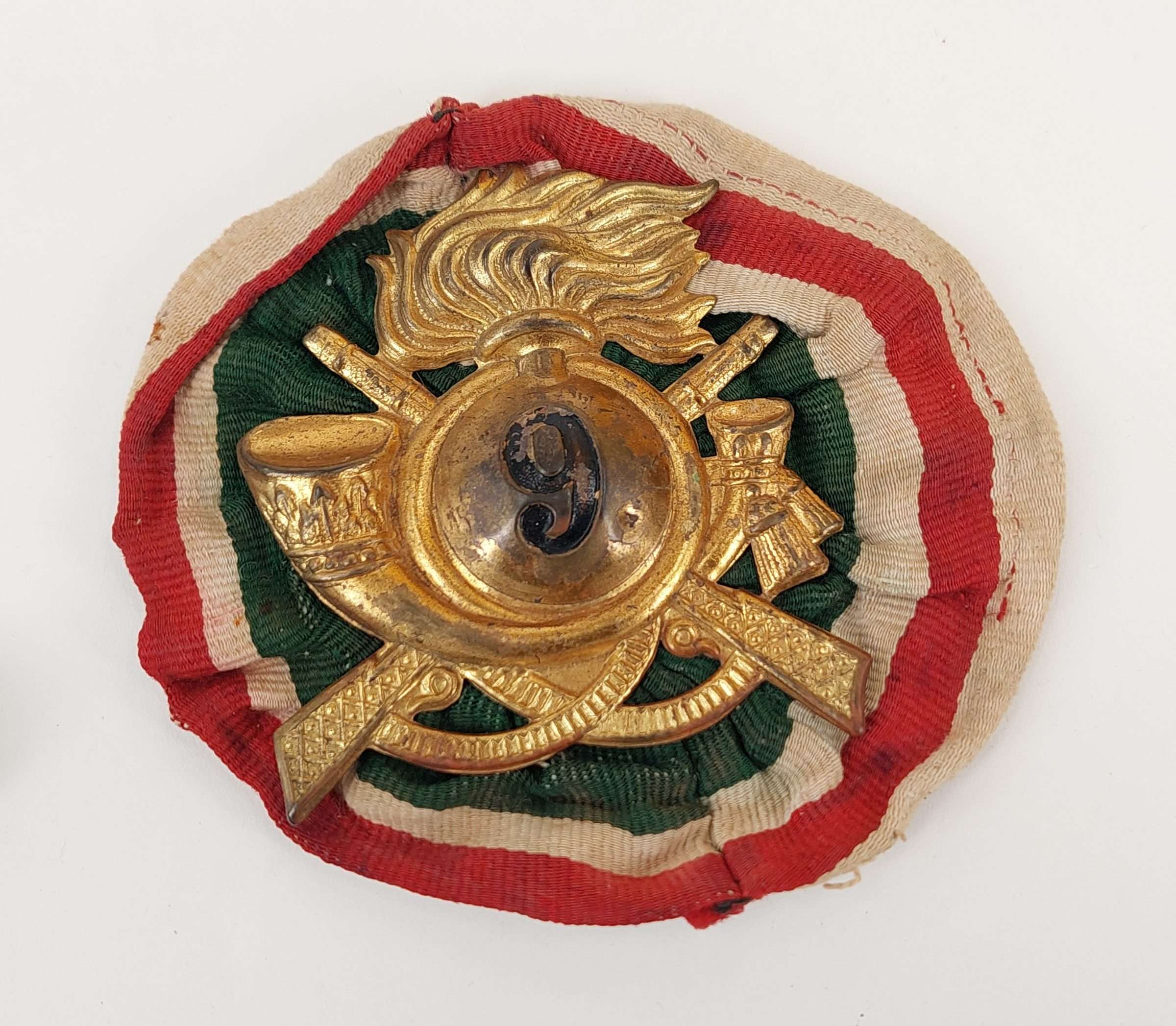 Original WW2 Italian 9th Bersaglieri Regiment Pith Helmet Badge with Rosette.